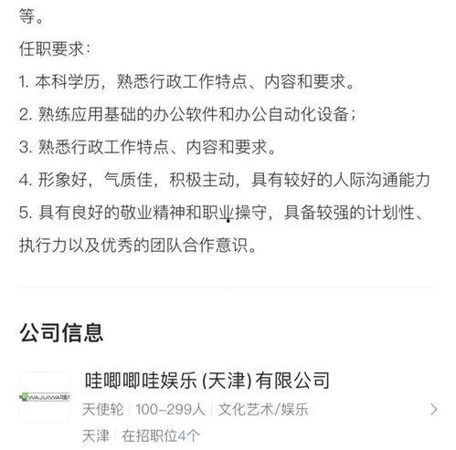 娱乐圈吃瓜专员这个岗位虽然听起来有些神秘,但实际上却充满了挑战和机遇。如果你对这个岗位感兴趣,不妨从现在开始,培养自己的观察力、写作能力和沟通能力,说不定未来你也能成为娱乐圈的“吃瓜专员”呢!